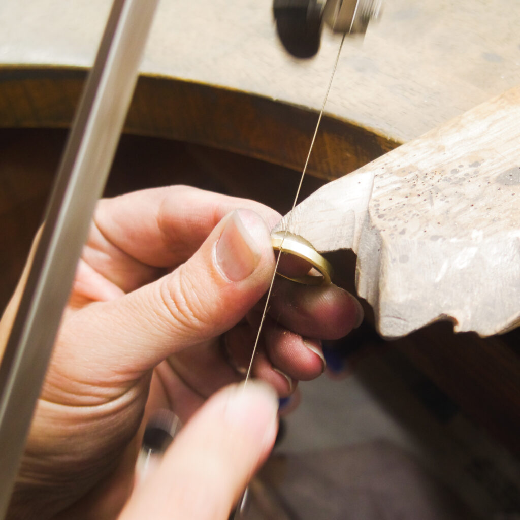 Forging is a manufacturing method where each piece of jewellery is made one at a time, creating one-of-a-kind pieces. Since no prototype is required and each piece is formed directly from precious metal ingots, it is easy to change the width and thickness of each piece and customised them to your liking.